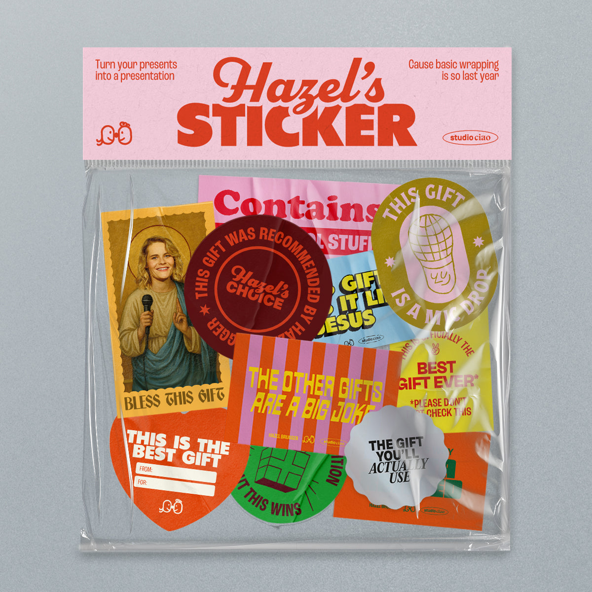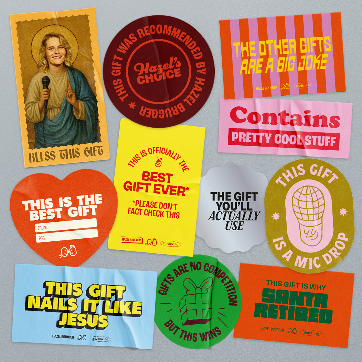 Deine Geschenkverpackungen sind optisch eine Beleidigung für jede*n Beschenkte*n? Kein Problem! Dieses 11-teilige Stickerset macht aus jeder halbwegs ok verpackten Aufmerksamkeit ein Geschenk mit Stil. Für alle, die ihre fehlenden Einpackskills mit Humor kompensieren müssen.